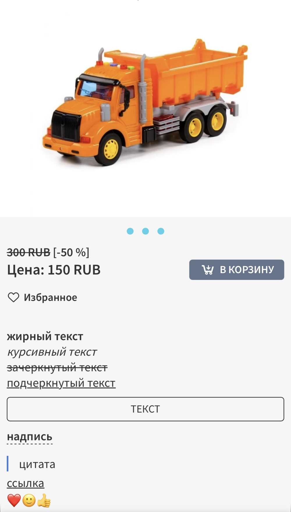 Использовать BB коды можно в описаниии товаров, сообщениях сценария бота, рассылке клиентам и некоторых других текстовых полях.