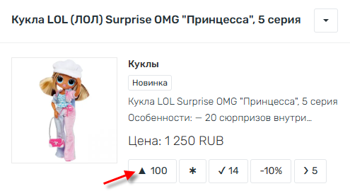 Рейтинг товара — это внутренний параметр, который не отображается явно для клиентов, но определяет порядок этого товара в общей ленте витрины. Изменить рейтинг товара можно в кабинете, в разделе «Товары», через быструю кнопку.